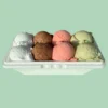 The 1-liter ice cream box, labeled “1L – 4 isvarianter,” offers four scoops in a delightful mix of flavors, including creamy vanilla, rich chocolate, sweet strawberry, and earthy pistachio. The scoops are neatly arranged in a white container, set against a light green background that enhances their vibrant colors. This smaller box is perfect for intimate settings or a personal treat, providing a satisfying variety of flavors in a compact size. It’s an excellent choice for those craving a mix of classic ice cream flavors for a cozy dessert experience.